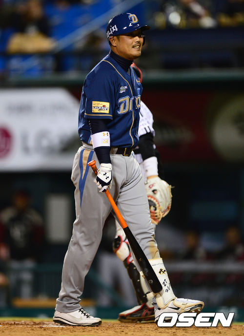 9일 오후 서울 잠실야구장에서 열린 2013 한국야쿠르트 세븐프로야구 LG 트윈스와 NC 다이노스의 경기, 7회초 무사에서 NC 이호준이 삼진으로 물러나고 있다.
