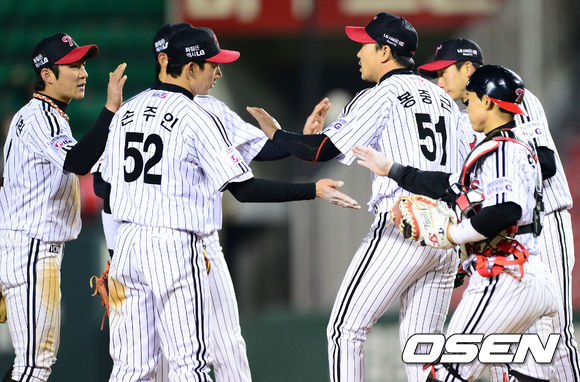 경기 종료 후 LG 선수들이 승리의 기쁨을 나누고 있다. /sunday@osen.co.kr