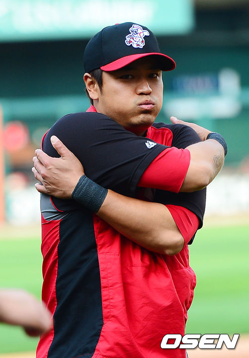 10일 오전(이하 한국시간) 미국 미주리주 세인트루이스 부시스타디움에서 '2013 메이저리그' 세인트루이스 카디널스과 신시내티 레즈의 경기가 열릴 예정인 가운데 경기 전 신시내티 추신수가 몸을 풀며 큰 숨을 내쉬고 있다.