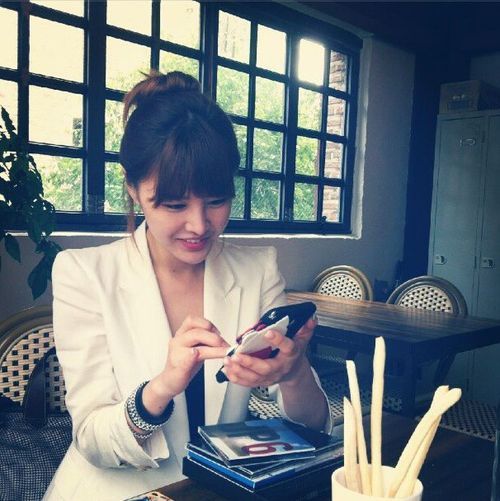 사진 속 박은지는 하얀색 재킷을 입고 머리를 올린 자연스러운 차림을 한 채 손에 들고 있는 휴대폰을 응시하고 있다. 상큼한 미소가 특유의 앳된 외모를 더욱 돋보이게 하는 모습이다.
