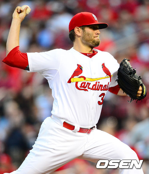 세인트루이스 선발 랜스 린이 힘차게 공을 뿌리고 있다.