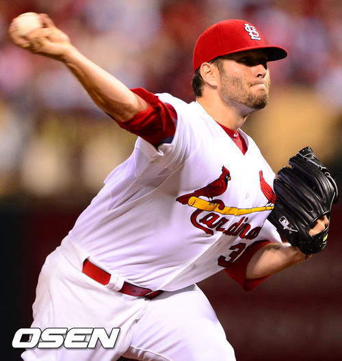 세인트루이스 선발 랜스 린이 힘차게 공을 뿌리고 있다.