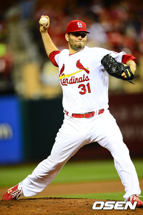 세인트루이스 선발 랜스 린이 힘차게 공을 뿌리고 있다.