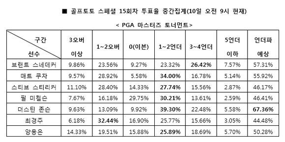 PGA 마스터즈 토너먼트 1라운드 대상 스페셜 15회차 중간집계 결과
