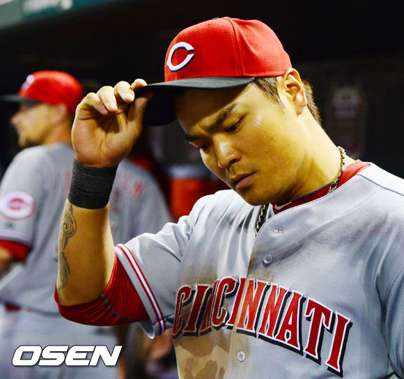 경기를 마치고 신시내티 추신수가 아쉬운 표정을 지으며 퇴장하고 있다./ rumi@osen.co.kr