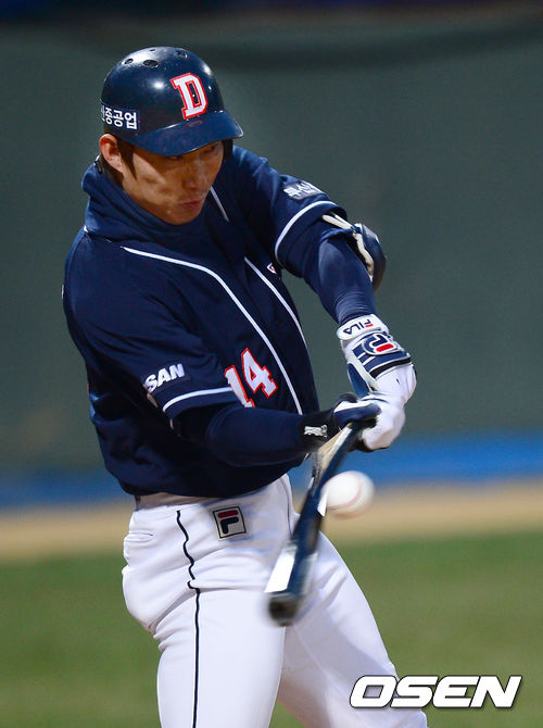 10일 오후 광주 무등경기장에서 '2013 한국야쿠르트 세븐 프로야구' KIA 타이거즈 대 두산 베어스의 경기가 열렸다. 3회초 두산 공격 1사 3루 상황 9번 고영민의 타격 중 배트가 부러지고 있다.