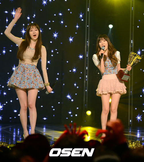 10일 오후 서울 유니클로 악스홀에서 진행된 MBC MUSIC '쇼 챔피언'에서 챔피언송을 차지한 다비치가 기뻐하고 있다.