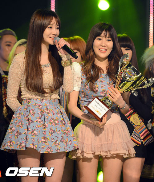 10일 오후 서울 유니클로 악스홀에서 진행된 MBC MUSIC '쇼 챔피언'에서 챔피언송을 차지한 다비치가 기뻐하고 있다.