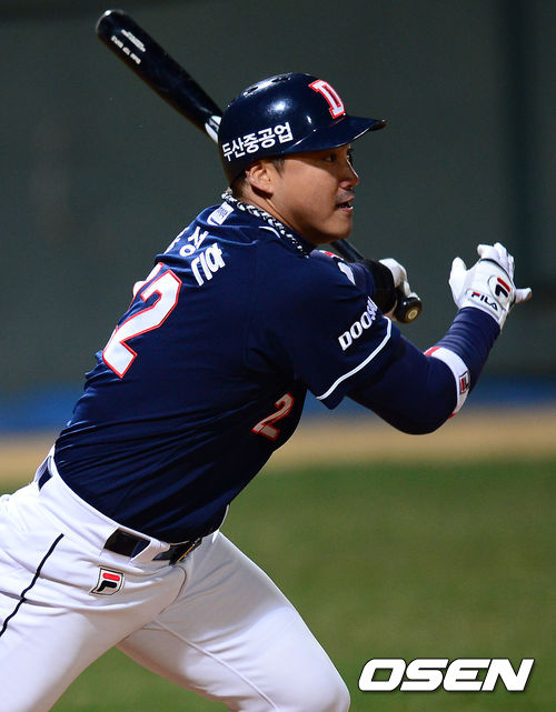 10일 오후 광주 무등경기장에서 '2013 한국야쿠르트 세븐 프로야구' KIA 타이거즈 대 두산 베어스의 경기가 열렸다. 4회초 두산 공격 1사 3루 상황 4번 홍성흔이 1타점 적시타를 날리고 있다.