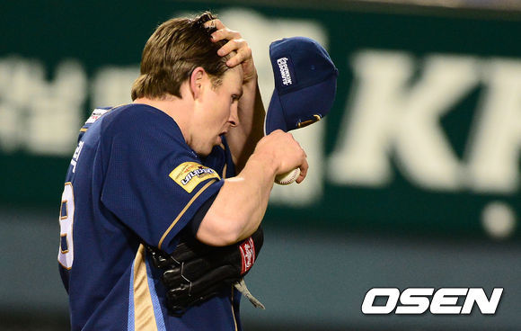 NC의 에릭 해커가 LG 타선을 이겨내지 못하고 조기 강판 당했다.