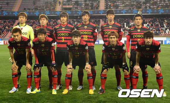 10일 오후 포항 스틸야드에서 열린 2013 아시아축구연맹(AFC) 챔피언스리그 G조 조별리그 4차전 포항 스틸러스와 산프레체 히로시마의 경기, 경기에 앞서 포항 베스트 11 선수들이 포즈를 취하고 있다.