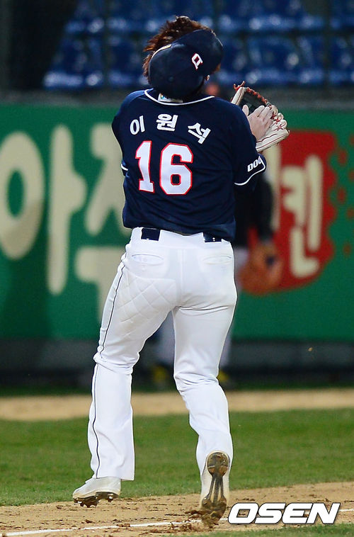 10일 오후 광주 무등경기장에서 '2013 한국야쿠르트 세븐 프로야구' KIA 타이거즈 대 두산 베어스의 경기가 열렸다. 7회말 KIA 공격 2사 1, 2루 상황 두산 3루수 이원석이 5번 최희섭의 뜬공 타구를 잡아내고 있다.