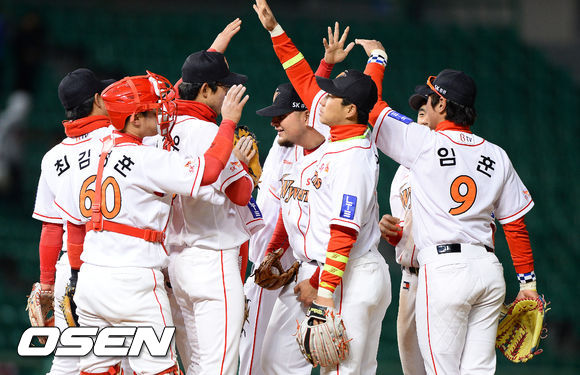 경기종료 후 SK 선수들이 승리의 기쁨을 나누고 있다./ soul1014@osen.co.kr
