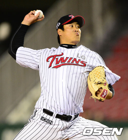 10일 오후 서울 잠실야구장에서 열린 2013 한국야쿠르트 세븐프로야구 LG 트윈스와 NC 다이노스의 경기, 8회초 LG 정현욱이 힘차게 공을 던지고 있다.