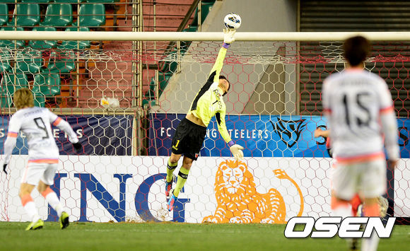 후반 포항 신화용 골키퍼가 히로시마의 중거리슛을 막아내고 있다./jpnews@osen.co.kr
