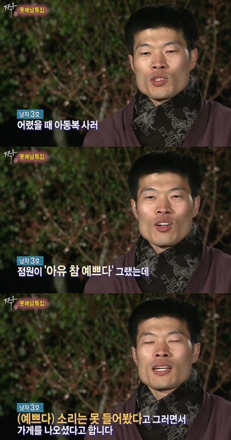 이날 남자3호는 “어린시절 어머니와 함께 아동복을 사러 갔는데, 점원이 ‘아유, 예쁘네’라고 했더니 어머니가 ‘‘야무지게 생겼다’는 소리는 들어봤어도 그런 말은 처음’이라고 말하며 매장에서 나왔다”고 말했다.