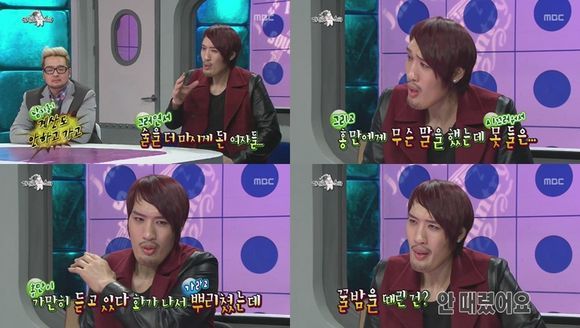 최홍만은 13일 오후 방송된 MBC 예능프로그램 '황금어장-라디오스타(이하 '라스')'에서 앞서 불거졌던 여대생 폭행시비에 대해 "그냥 뿌리친 것이었을 뿐이다"라고 말했다.