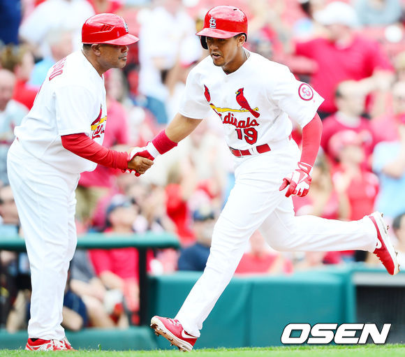 5회말 2사 주자 없는 상황에서 세인트루이스 존 제이가 중월 선취 솔로홈런을 날린 후 그라운드를 돌고 있다. / rumi@osen.co.kr