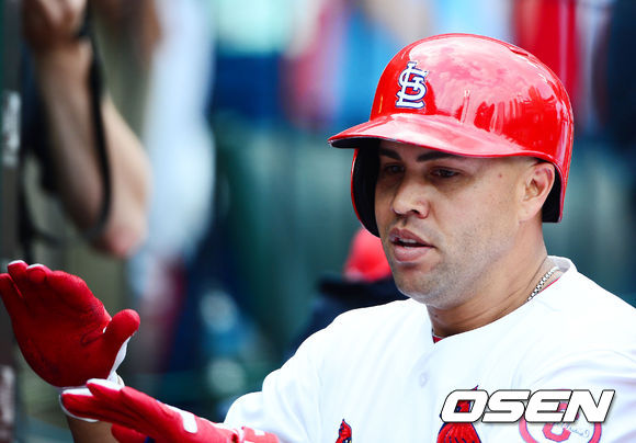 5회 2사 2루 세인트루이스 벨트란이 우월 투런 홈런을 날린 후 덕아웃에서 기뻐하고 있다. / rumi@osen.co.kr