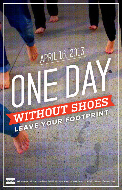 ‘신발 없는 하루’는 신발 한 켤레가 맨발의 아이들의 생활에 줄 수 있는 변화와 영향력을 알리기 위해 전 세계 사람들이 신발을 벗는 날로 올해 6회를 맞는 글로벌 캠페인이다. 작년 ‘신발 없는 하루’에는 한국, 미국, 영국, 일본, 호주 등 50개 이상의 나라가 함께 했고, 3000여개의 단체가 참여 했을 뿐 아니라, LA 갤럭시 축구선수, 배우, 뮤지션, 유명 MC등과 같은 영향력 있는 사람들이 앞장서서 알렸다.