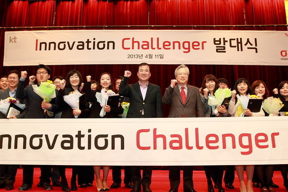KT는 전사적인 혁신체계를 정립하기 위해 혁신추진단을 신설하고 이석채 회장 및 각부문장을 비롯해 노조위원장 등 주요 임직원들이 모인 자리에서 발대식을 가졌다고 11일 밝혔다. 전사적으로 혁신 아이템을 발굴하고, 적용하기 위한 각 스텝부서별 전문가 457명도 선발했다.
