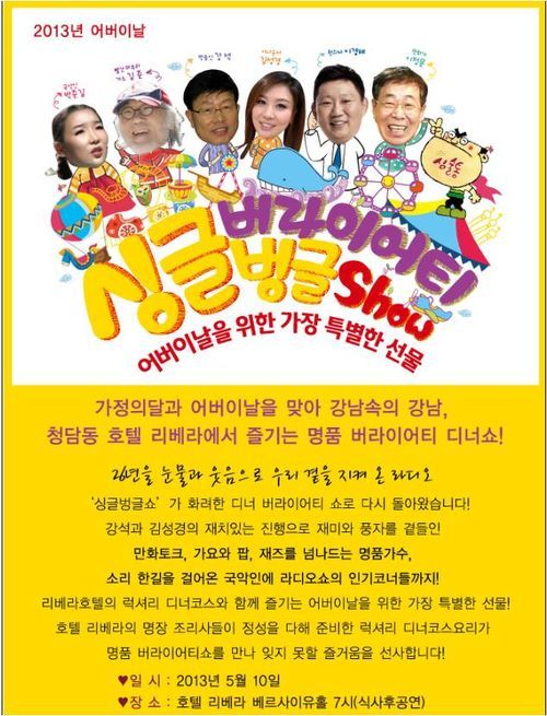 강석은 다음달 10일 호텔 리베라에서 버라이어티 토크쇼 '싱글벙글 버라이어티 쇼'를 연다. 이번 토크쇼는 가정의 달 5월을 맞아 부모님과 가족을 위한 새로운 포맷의 디너쇼다.