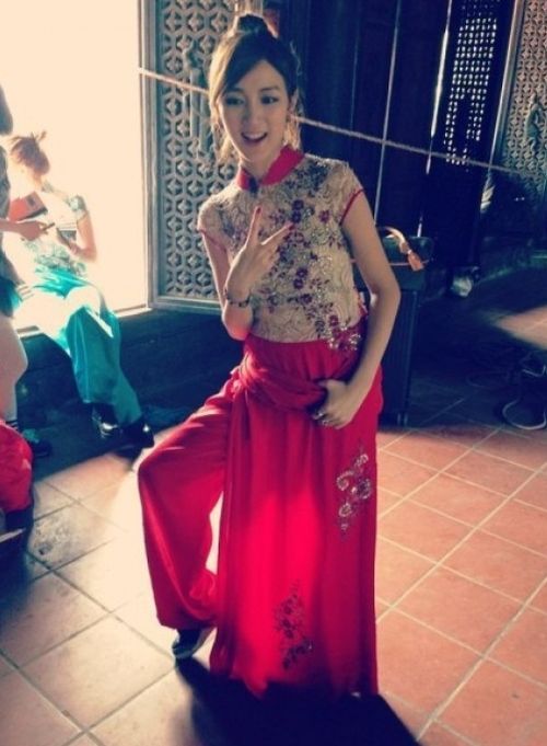 지아는 11일 오후 자신의 웨이보에 빨간 아오자이를 입은 사진을 게재했다. 그는 KBS 2TV 예능 프로그램 '출발 드림팀 시즌2' 촬영차 베트남에 갔을 때 아오자이를 입었다는 내용의 글을 사진과 함께 덧붙였다.