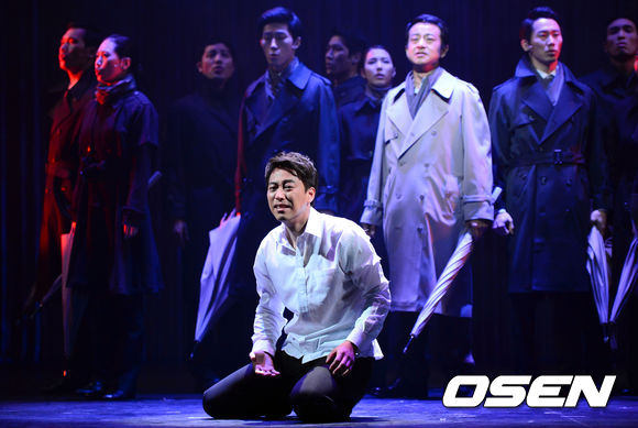 11일 오후 서울 대학로 뮤지컬 센터 대극장에서 열린 뮤지컬 '그날들' 프레스콜에서 배우 오만석이 연기를 펼치고 있다.