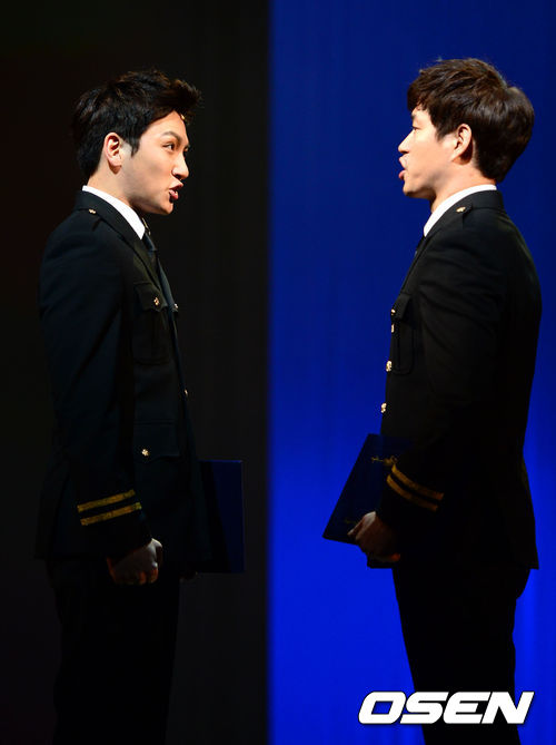 11일 오후 서울 대학로 뮤지컬 센터 대극장에서 열린 뮤지컬 '그날들' 프레스콜에서 배우 지창욱과 유준상이 연기를 펼치고 있다.