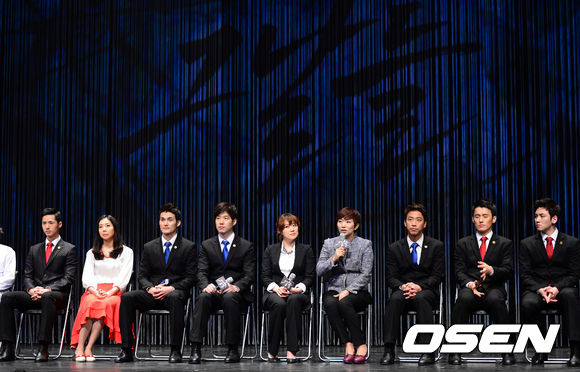 11일 오후 서울 대학로 뮤지컬 센터 대극장에서 열린 뮤지컬 '그날들' 프레스콜에서 배우들이 기자간담회를 갖고 있다.