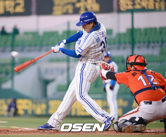 11일 오후 대구구장에서 '2013 한국야쿠르트 세븐 프로야구' 삼성 라이온즈와 한화이글스 경기 1회말 1사 2루 이승엽 동점 적시타를 날리고 있다.