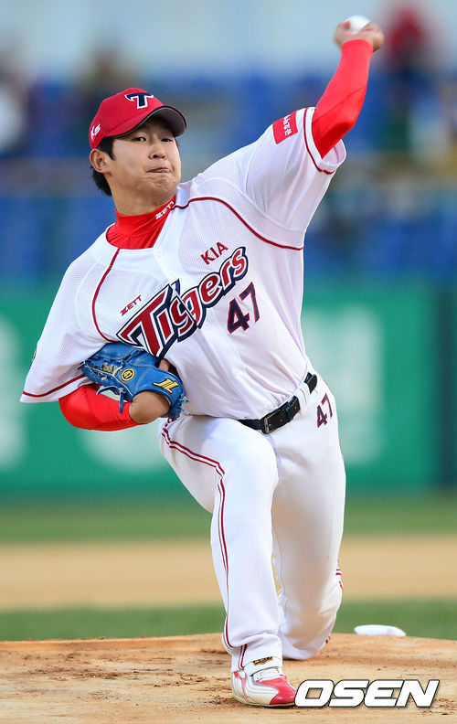11일 오후 광주 무등경기장에서 '2013 한국야쿠르트 세븐 프로야구' KIA 타이거즈 대 두산 베어스의 경기가 열렸다. KIA 선발 박경태가 힘차게 공을 던지고 있다.