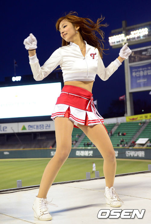 11일 오후 서울 잠실구장에서 열린 '2013 한국야쿠르트 세븐 프로야구' LG 트윈스와 NC 다이노스의 경기, 치어리더 강윤이가 공연을 펼치고 있다.