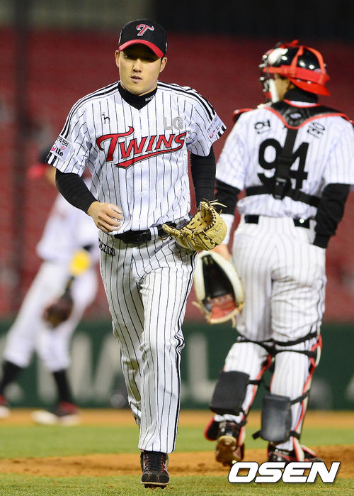 11일 오후 서울 잠실구장에서 열린 '2013 한국야쿠르트 세븐 프로야구' LG 트윈스와 NC 다이노스의 경기 7회초 2사 1루, 신정락이 마운드를 내려오고 있다.