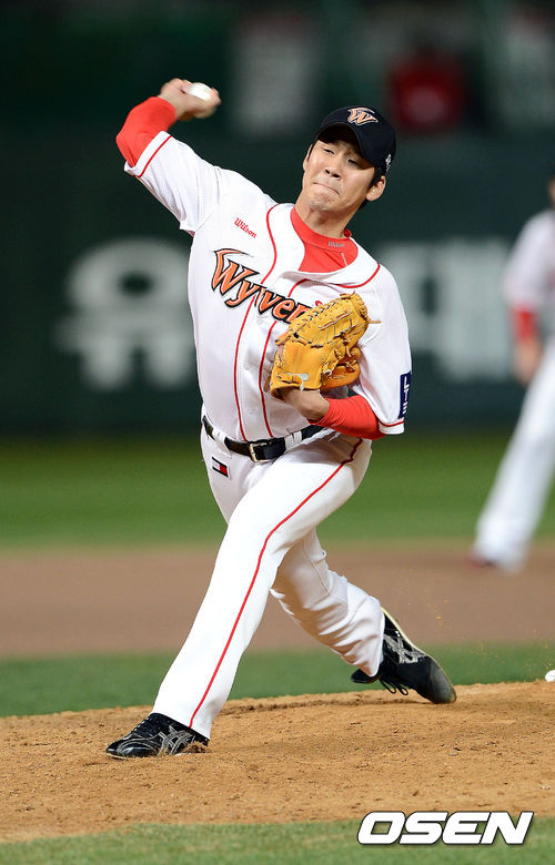 11일 오후 인천 문학구장에서 열린 '2013 한국야쿠르트 세븐 프로야구' SK 와이번스와 넥센 히어로즈의 경기 SK 윤길현이 역투하고 있다.