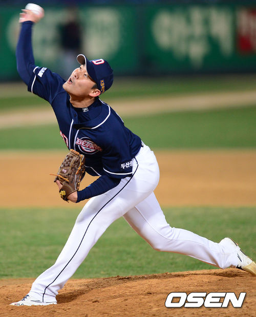 11일 오후 광주 무등경기장에서 '2013 한국야쿠르트 세븐 프로야구' KIA 타이거즈 대 두산 베어스의 경기가 열렸다. 8회말 KIA 공격 구원 등판한 두산 투수 홍상삼이 힘차게 공을 던지고 있다.