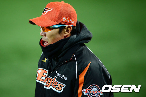 8회초 한화 이대진 코치가 경기를 지켜보고 있다.