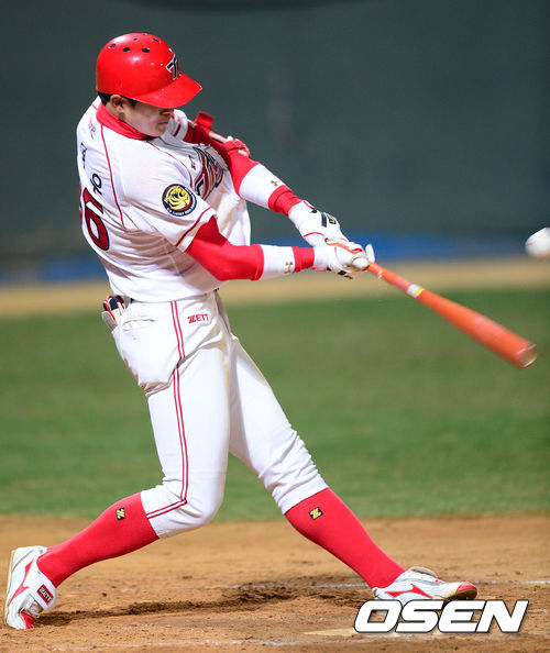 11일 오후 광주 무등경기장에서 '2013 한국야쿠르트 세븐 프로야구' KIA 타이거즈 대 두산 베어스의 경기가 열렸다. 9회말 KIA 공격 1사 주자없는 상황 2번 고영우가 안타를 날리고 있다.
