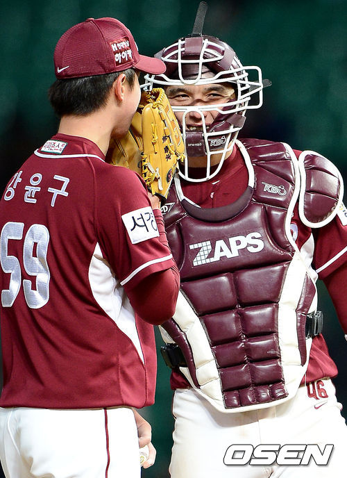 7회말 넥센 박동원이 마운드에 올라 강윤구와 이야기를 나누고 있다. / youngrae@osen.co.kr