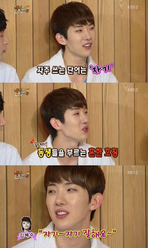 조권은 이어 "처음에는 나에게만 자기라고 부르는 줄 알고 좋아했는데 모든 동생들에게 자기라고 부르더라"라며 김혜수가 조권에게 했던 '자기~자기 잘해요'를 성대모사해 웃음을 자아냈다.
