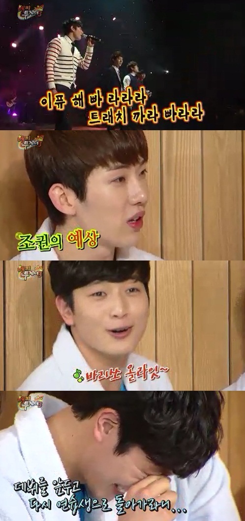 지난 11일 방송된 KBS 2TV 예능 프로그램 '해피투게더'에는 양희경, 조권, 정진운, 케이윌, 다이나믹듀오 등이 출연했다. 이날 모든 게스트가 가수인 만큼, 이들은 무대 위의 에피소드와 연습실 등에서 겪은 이야기를 털어놨다.