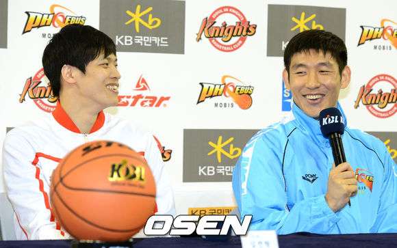 12일 오전 서울 잠실학생체육관에서 열린 '2012-2013 KBL 챔피언결정전 미디어데이'에서 SK 김선형과 모비스 양동근이 미소짓고 있다.
