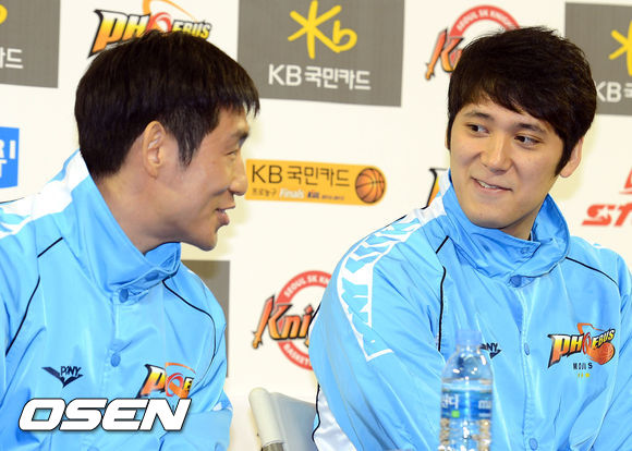 12일 오전 서울 잠실학생체육관에서 열린 '2012-2013 KBL 챔피언결정전 미디어데이'에서 모비스 양동근 함지훈이 이야기를 나누고 있다.