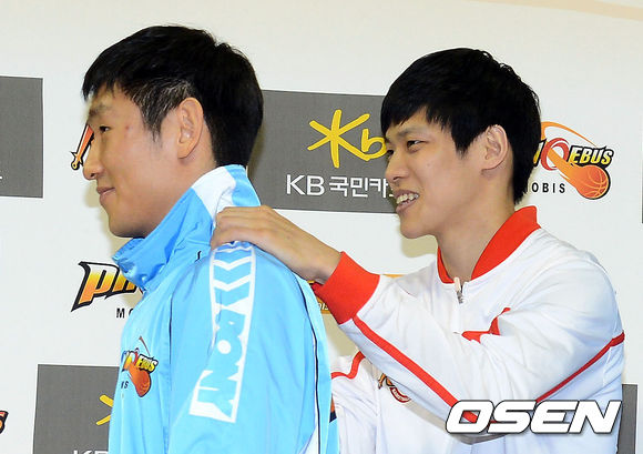 12일 오전 서울 잠실학생체육관에서 열린 '2012-2013 KBL 챔피언결정전 미디어데이'에서 양동근과 김선형이 기자회견 장소를 빠져나가고 있다.