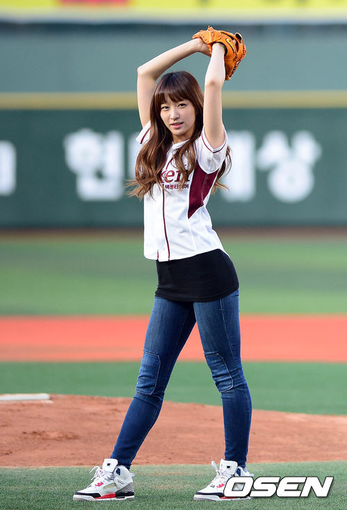 12일 오후 서울 목동구장에서 열린 '2013 한국야쿠르트 세븐 프로야구' 넥센 히어로즈와 삼성 라이온즈의 경기 시작 전 다소니 하니가 시구를 하고 있다.