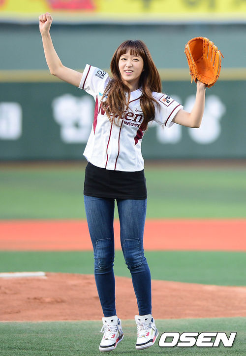 12일 오후 서울 목동구장에서 열린 '2013 한국야쿠르트 세븐 프로야구' 넥센 히어로즈와 삼성 라이온즈의 경기 시작 전 다소니 하니가 시구를 마치고 기뻐하고 있다.