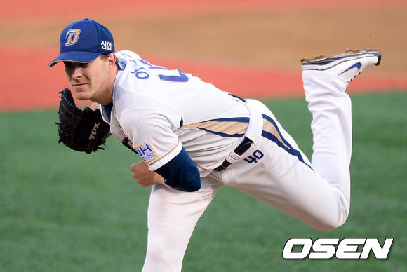 1회초 NC 선발 아담이 역투하고 있다.