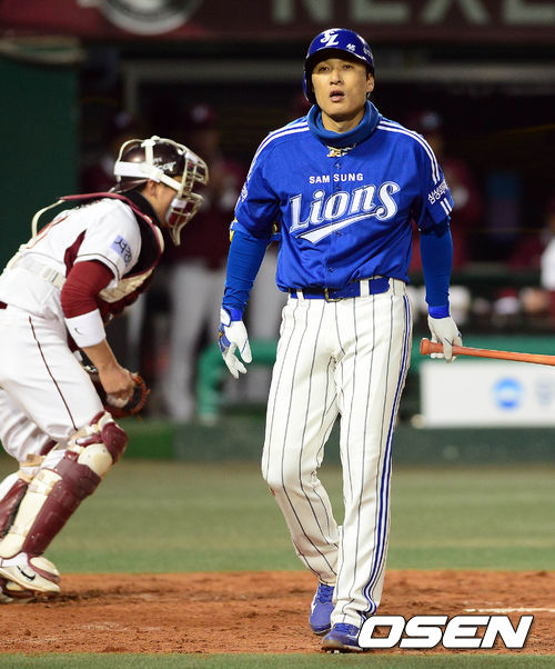 12일 오후 서울 목동구장에서 열린 '2013 한국야쿠르트 세븐 프로야구' 넥센 히어로즈와 삼성 라이온즈의 경기 3회초 1사 3루 이승엽이 삼진을 당한 후 덕아웃으로 향하고 있다.