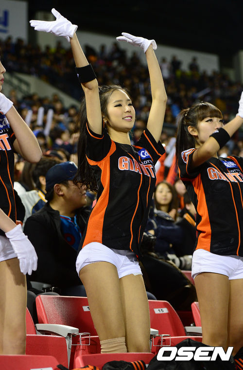 12일 오후 서울 잠실야구장에서 '2013 한국야쿠르트 세븐 프로야구' 두산 베어스와 롯데 자이언츠의 경기가 열렸다. 롯데 치어리더 박기량이 응원을 펼치고 있다.