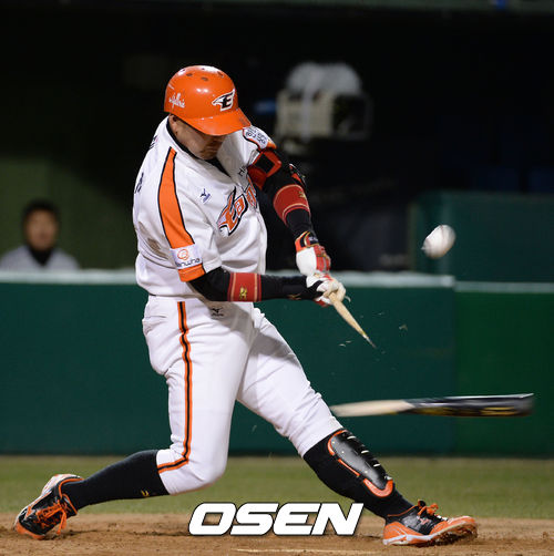 12일 오후 대전구장에서 열린 '2013 한국야쿠르트 세븐 프로야구' 한화이글스와 LG트인스 경기 5회말 1사 김태완 방망이가 부러지면서 내야땅볼 아웃처리되고 있다.